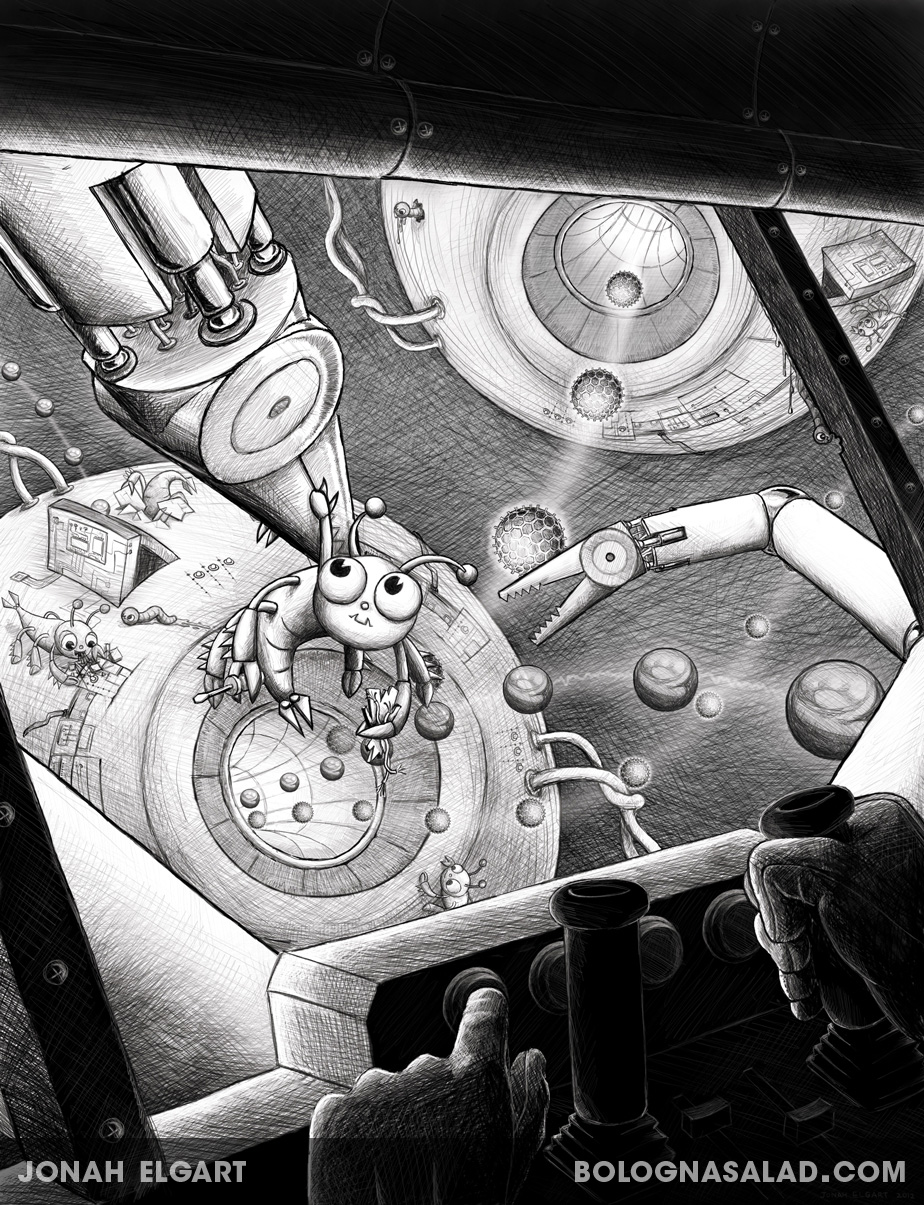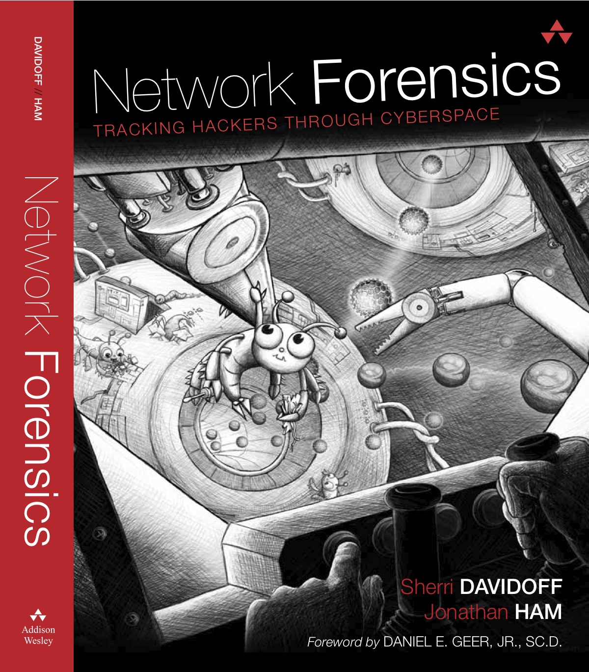Drawn in Photoshop on a Wacom tablet. Despite the appearance, nothing except early sketches was done in pencil. This piece was used as a cover for the book, Network Forensics - Tracking Hackers Through Cyberspace." which was written by a friend of mine.